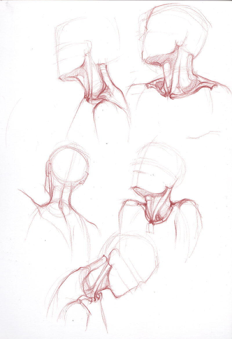 Почему-то первой получилась шея, но с другой стороны все логично - нужно же на чем-то держаться голове! XD Наброски "с натуры" или с себя в зеркале.